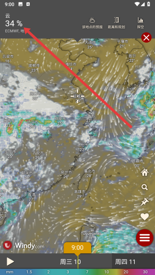 4、返回到主頁面中,可以在左上方查看到當(dāng)前地區(qū)云量占比。
