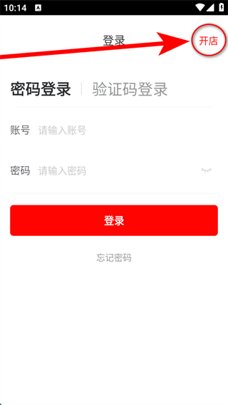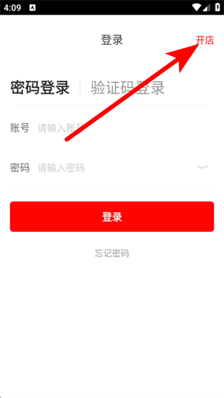 1、打開京東秒送商家版APP,在登錄界面點擊右上角開店。