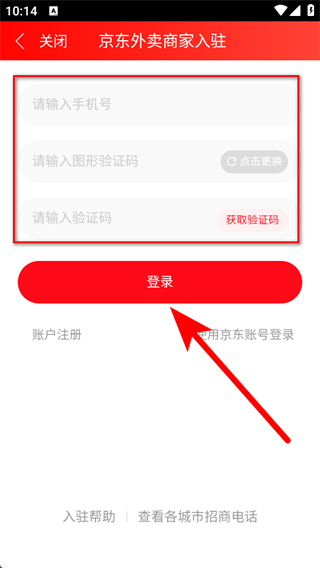 3、進入頁面輸入手機號等信息,然后點擊登錄,后續(xù)按照提示完成入駐。