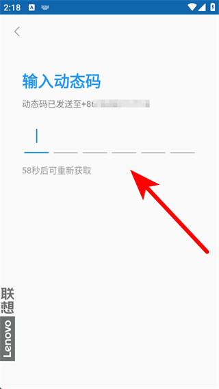 4、進入輸入動態(tài)碼頁面,輸入收到的短信動態(tài)碼,完成注冊操作。