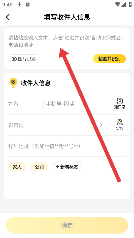 3、填寫新的收件人信息如姓名、手機號、省市區(qū)、詳細地址等,也可以選擇復(fù)制黏貼,確認無誤后點擊確定保存。