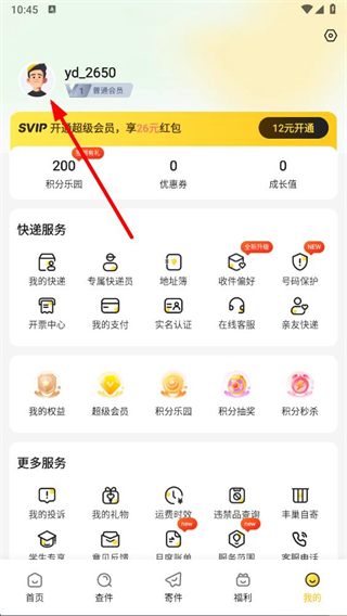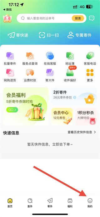 1、打開韻達快遞APP,點擊右下角我的選項,進入個人頁面。