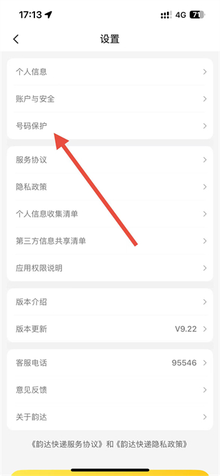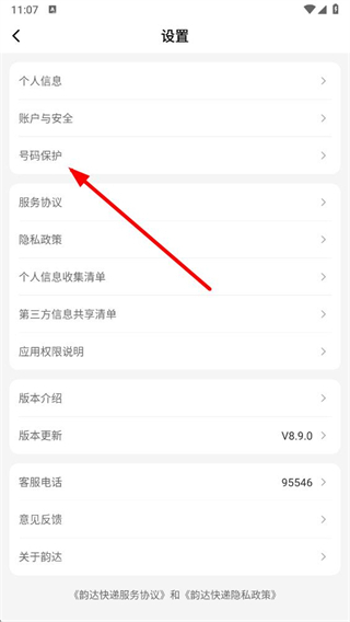 2、進入設(shè)置頁面后,找到號碼保護選項并點擊,跳轉(zhuǎn)至號碼保護相關(guān)操作界面。