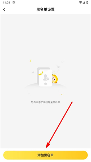 4、在黑名單設(shè)置頁面下方,點擊添加黑名單選項按鈕。