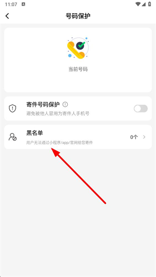 3、在號碼保護頁面中,找到黑名單選項并點擊,進入黑名單設(shè)置的操作界面。