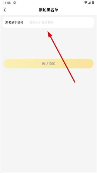 5、在輸入框內(nèi)輸入需要拉黑的手機號,點擊確認添加完成黑名單號碼添加。