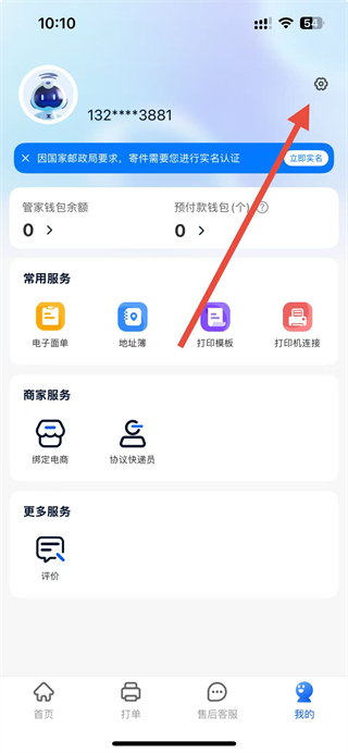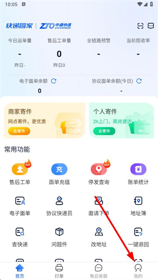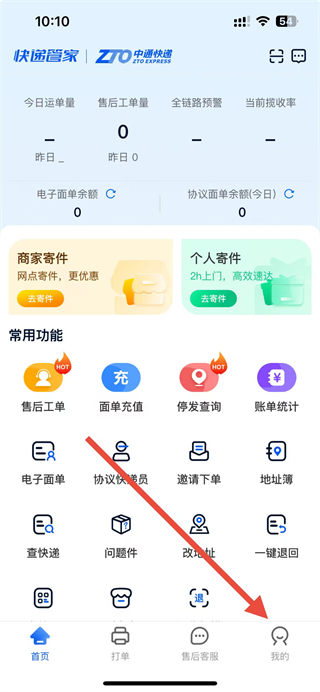 1、在中通快遞app首頁(yè)點(diǎn)擊我的選項(xiàng),進(jìn)入個(gè)人頁(yè)面。