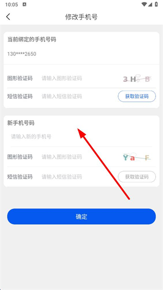 4、在修改手機(jī)號(hào)頁(yè)面,驗(yàn)證當(dāng)前手機(jī)號(hào),輸入新手機(jī)號(hào)和驗(yàn)證碼,最后點(diǎn)擊確定完成修改。