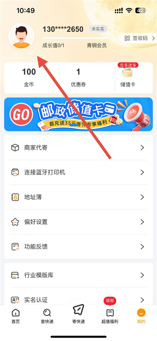 1、打開郵政EMS后,點(diǎn)擊首頁底部我的選項(xiàng),進(jìn)入個人界面。