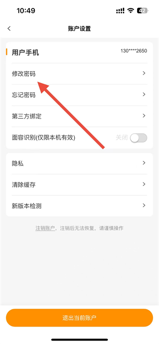3、在賬戶設(shè)置頁面中,找到并點(diǎn)擊修改密碼選項(xiàng)。