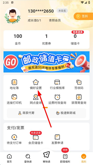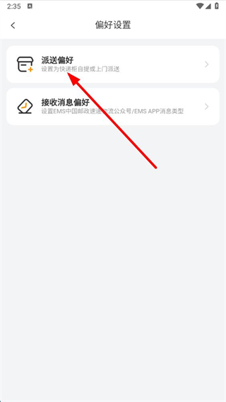 2、在偏好設(shè)置界面,點(diǎn)擊派送偏好,進(jìn)入派送偏好設(shè)置頁面。