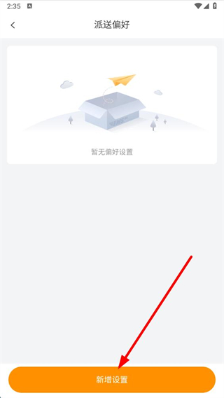 3、在派送偏好頁面,點(diǎn)擊新增設(shè)置,進(jìn)入派送偏好設(shè)置詳情界面。