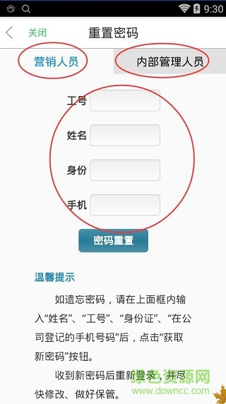 如遺忘密碼,請?jiān)谏厦婵騼?nèi)輸入“姓名”、“工號”、“身份證”、“在公司登記的手機(jī)號碼”后,點(diǎn)擊“獲取新密碼”按鈕。