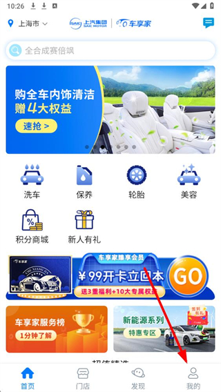 1、在車享家首頁(yè),點(diǎn)擊底部我的選項(xiàng),點(diǎn)擊進(jìn)入我的頁(yè)面。