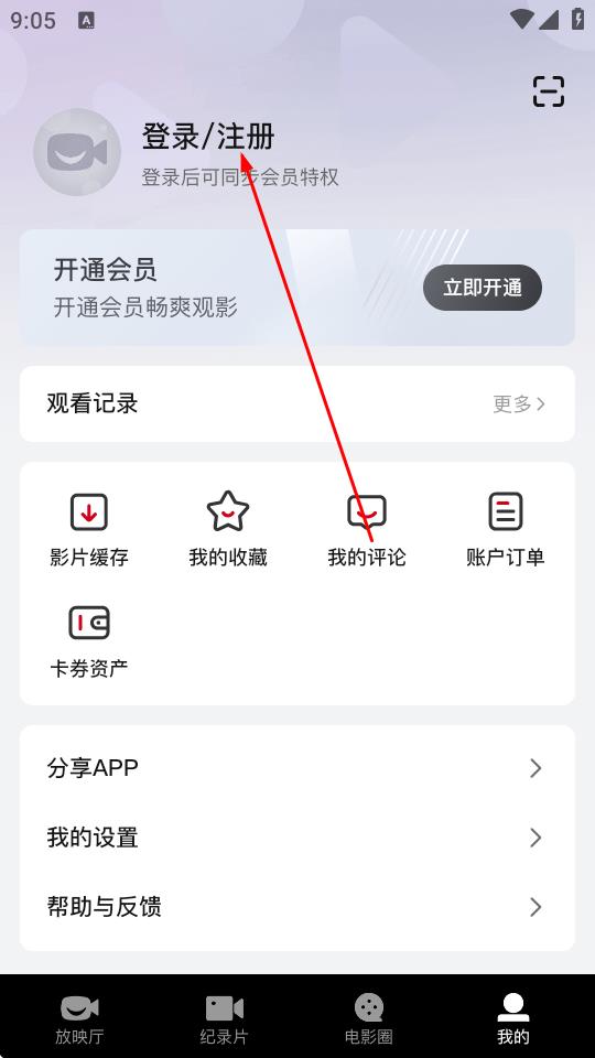 1、打開歡喜首映APP,點擊底部導航欄中的我的。
