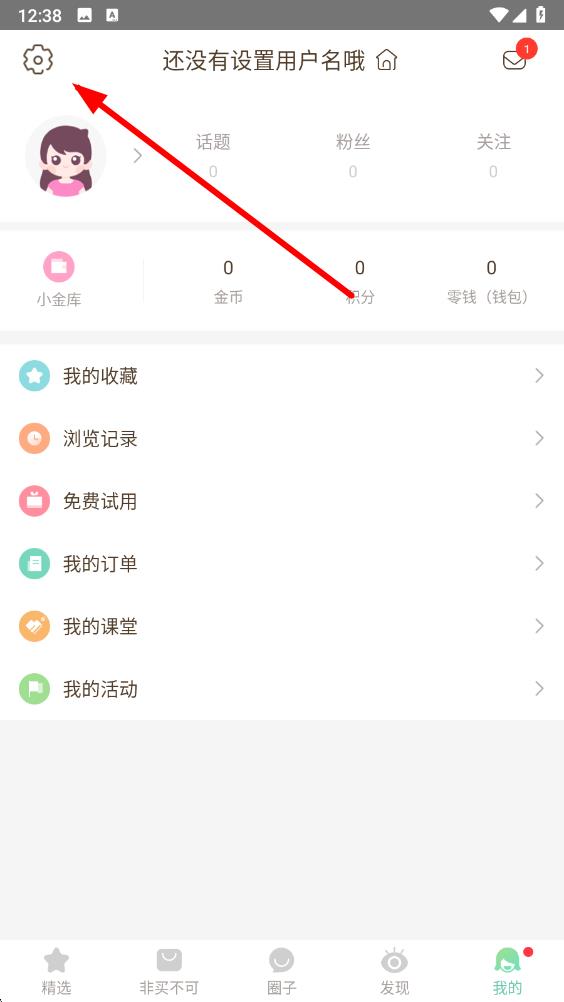 2、在個人界面中,點擊左上角的設置圖標,進入設置頁面。
