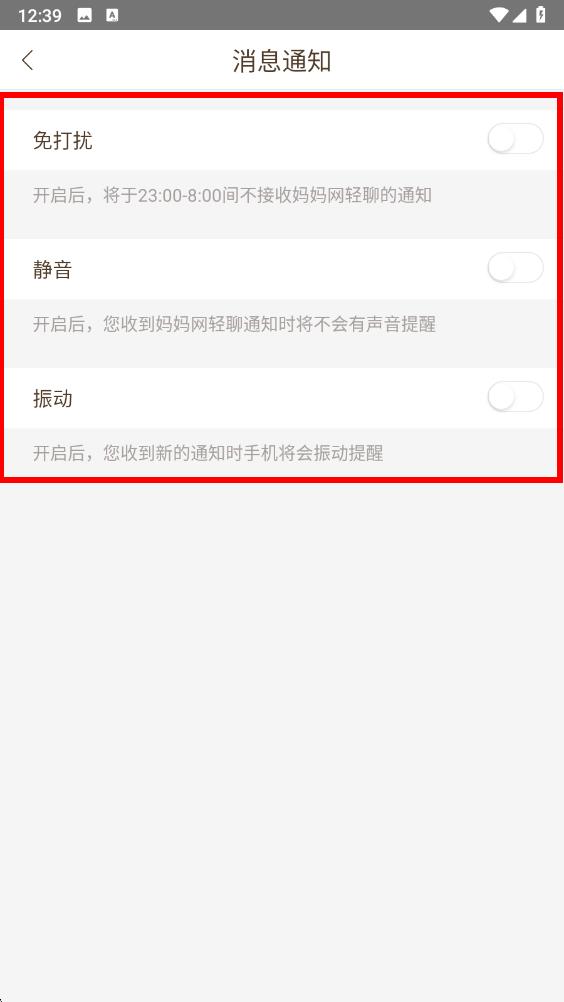 5、在該頁面可對免打擾、靜音、振動等通知相關選項進行關閉操作。