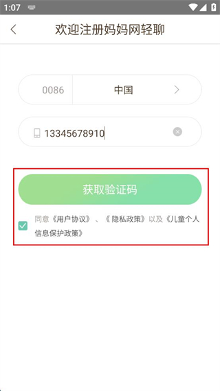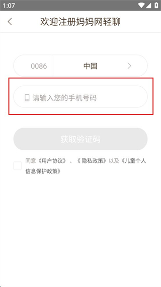 2、在注冊頁面的手機號碼輸入框中,填寫對應的手機號碼,準備獲取驗證碼。