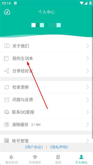 2、在個(gè)人中心頁(yè)面中,找到并點(diǎn)擊我的生詞本選項(xiàng)。