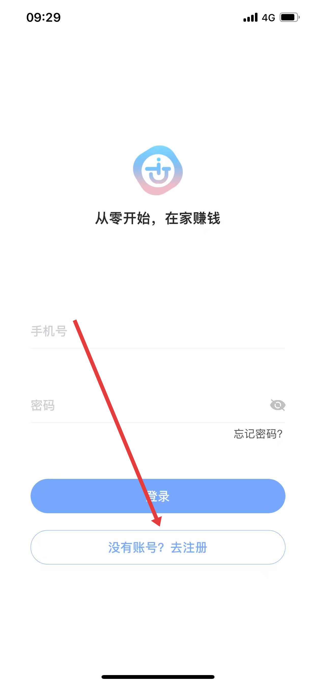 2、進(jìn)入登錄界面后,點(diǎn)擊下方?jīng)]有賬號?去注冊選項,進(jìn)入注冊頁面。