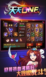 天天DNF是一款傳承了經(jīng)典魔幻風(fēng)格的動(dòng)作格斗游戲,橫版動(dòng)作超強(qiáng)打擊感,華麗技能全屏轟炸,隨機(jī)障礙與寶箱掉落,裝備技能、升級(jí)強(qiáng)化、成就任務(wù)。讓你夢(mèng)回年少,夢(mèng)回DNF!最多可帶8個(gè)傭兵,可輔助、可控制、可輸出,放心將背后交給你的伙伴,上百小時(shí)的副本體驗(yàn)!隱藏副本,各種豐富RPG元素應(yīng)有盡有,還有更多不同地面陷阱還原真實(shí)體驗(yàn)。讓你夢(mèng)回年少,夢(mèng)回DNF!灑下熱血,讓我們來戰(zhàn)斗吧!