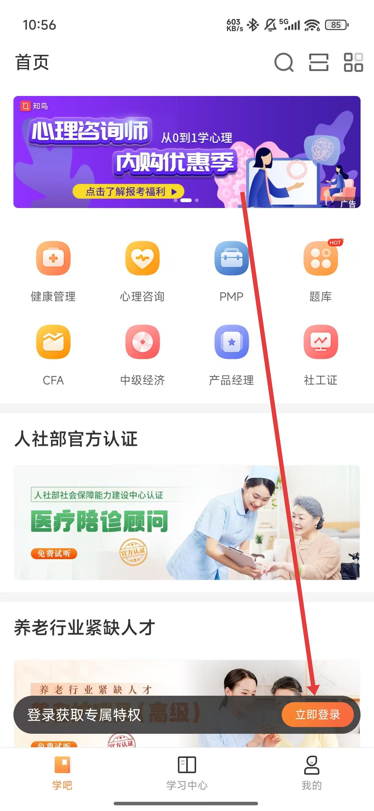 2、在進入到首頁中,可以點擊下方立即登錄按鈕,進行登錄操作。