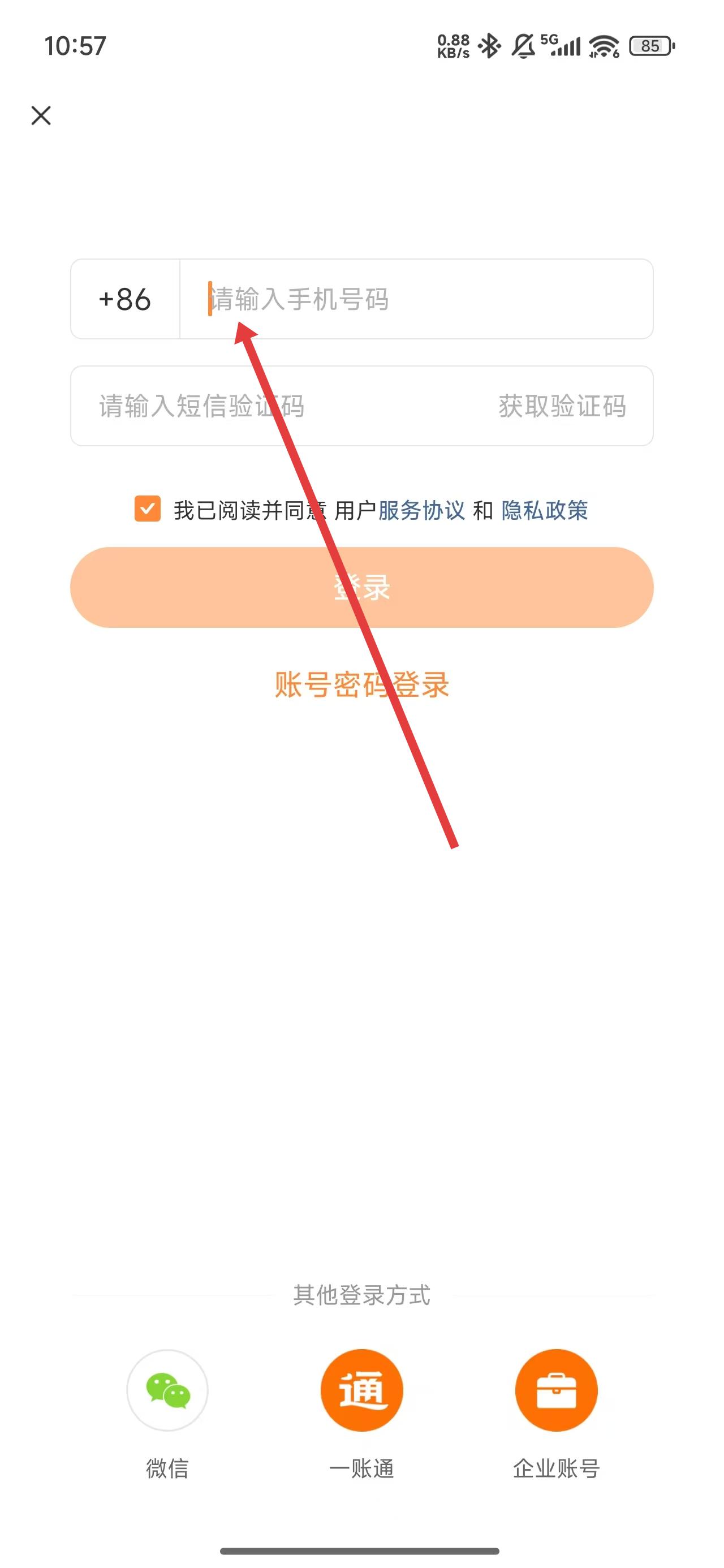 4、點擊輸入框,填寫手機號以獲取驗證碼后完成登錄操作。