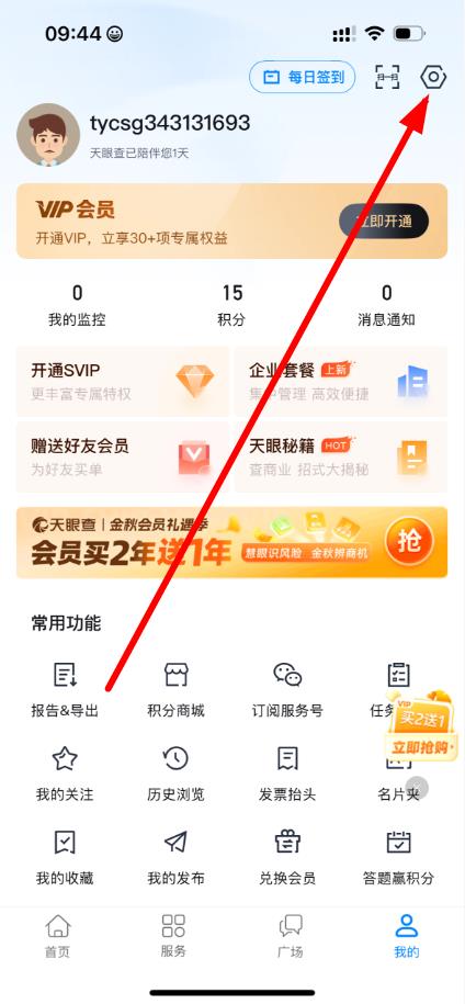 1、打開天眼查App,在首頁點擊下方導航欄中我的進入個人頁面。