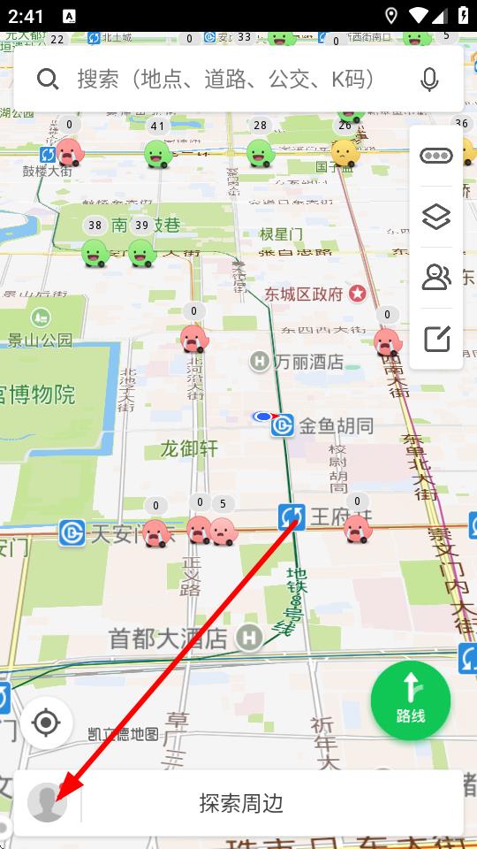 K友在線:地圖上的其他用戶顯示的顏色幫你快速區(qū)別擁堵情況。
