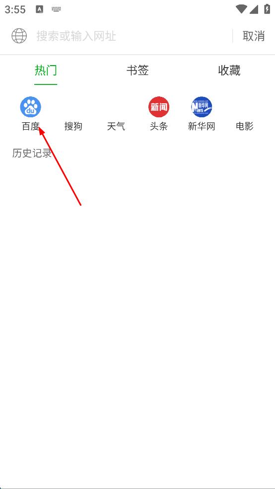 2、在搜索欄中,點擊“百度”進入百度搜索頁面。