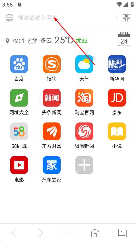 1、打開瀏覽器,點擊頂部搜索欄。