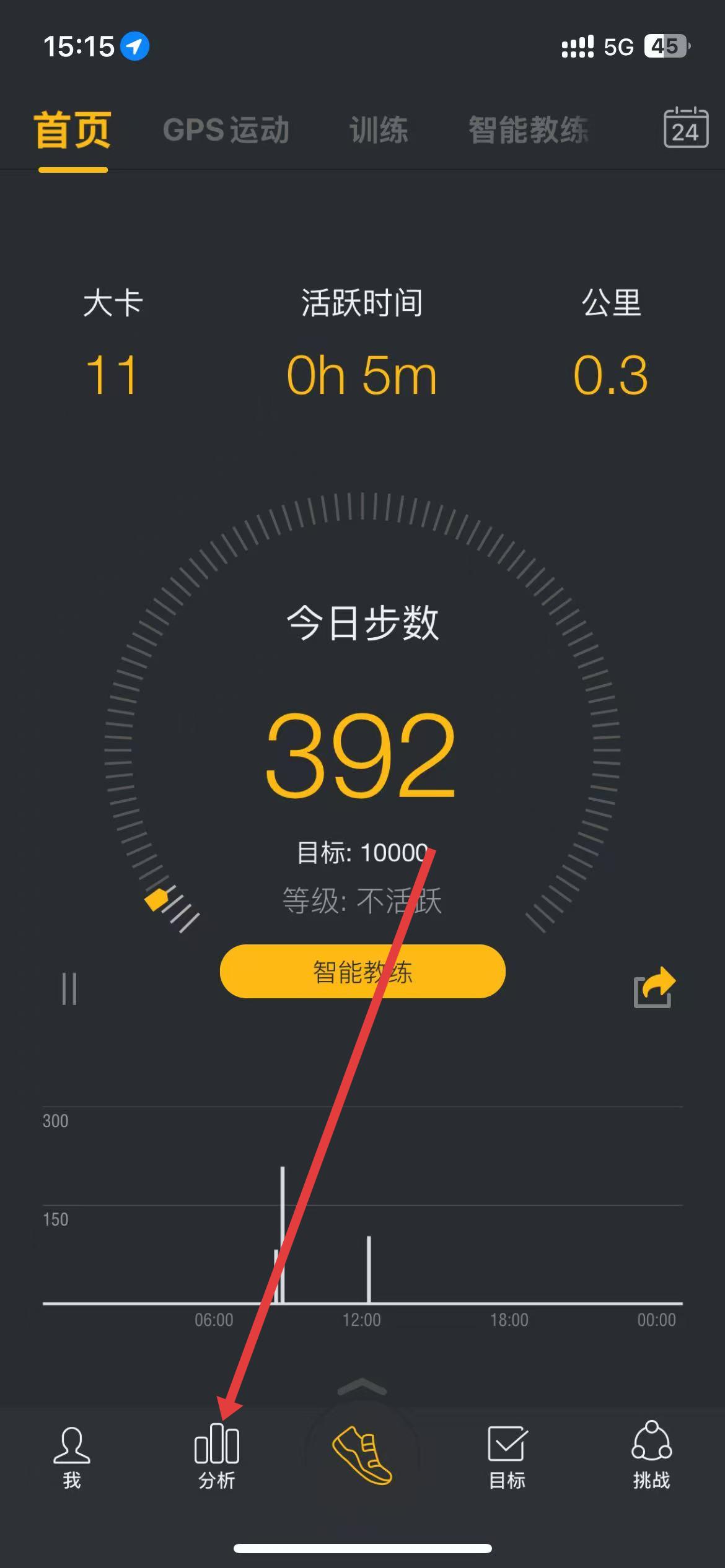 1、打開動(dòng)動(dòng)計(jì)步器,點(diǎn)擊底部導(dǎo)航欄中的分析。