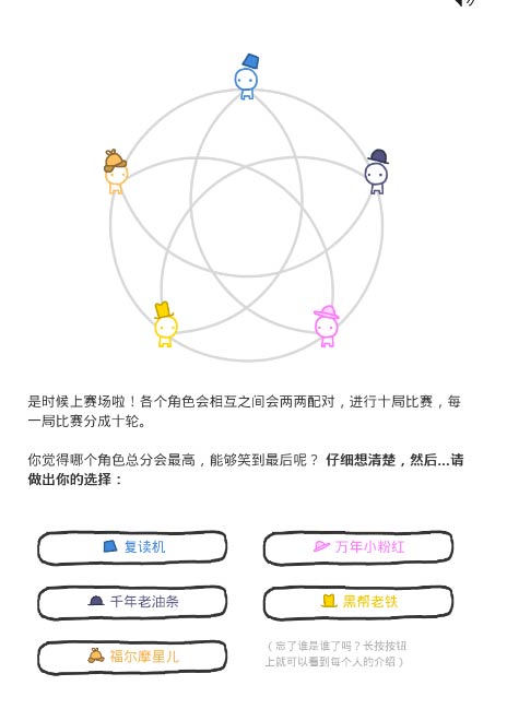 隨著游戲的博弈,也會有新的角色出現(xiàn),比如復(fù)讀鴨、一根筋、胡亂來,你需要做的時間很簡單,根據(jù)指引進(jìn)行選擇,每次選擇就是一次慎重的博弈,在這過程中,游戲會解答你選擇的結(jié)果,包括「誤解」、「寬容」等等?;蛟S會恍然大悟,咦,在現(xiàn)實生活中,人與人之間的相處不就是這樣的嗎?