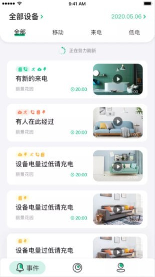 3、劃分不同的事件提醒類別欄目,其中涵蓋移動類、來電類以及低電類欄目;
