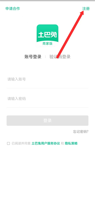 1、打開土巴兔APP,在登錄頁面點(diǎn)擊右上角注冊的按鈕。
