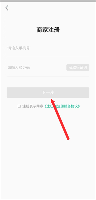 2、進(jìn)入商家注冊頁面,輸入手信息后,點(diǎn)擊下一步。
