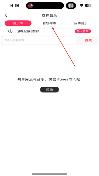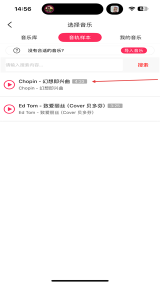 2、進(jìn)入選擇音樂(lè)的頁(yè)面內(nèi),用戶需點(diǎn)擊音軌樣本的功能按鈕。