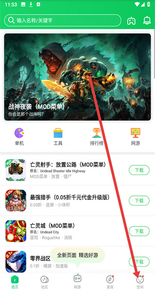 1、可以點擊葫蘆俠修改器首頁下的空間按鈕,進入我的空間。