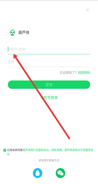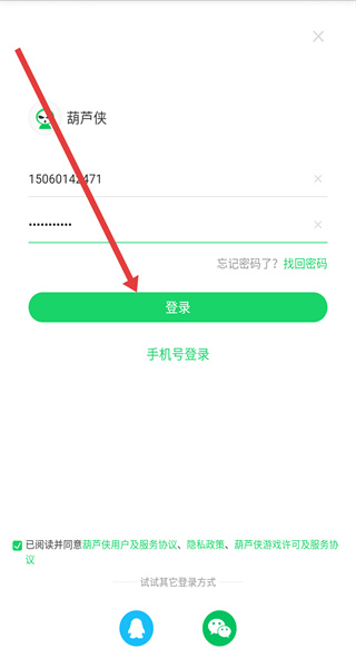 3、在登錄頁面中,可以點擊輸入框依次填寫要登錄的手機號和密碼信息。