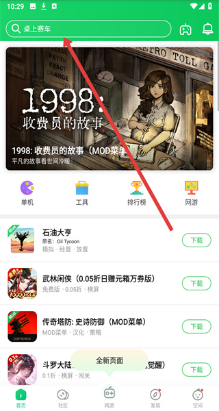2、在搜索欄填寫好要搜索的游戲后,點擊右側(cè)搜索按鈕進行搜索。