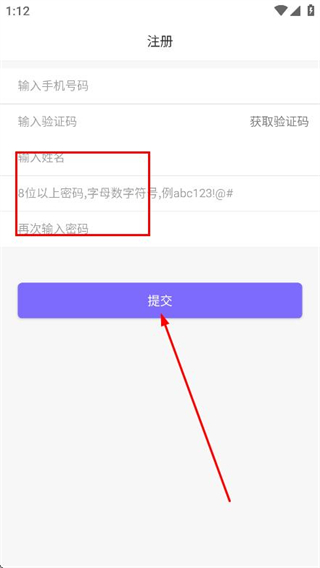3、輸入姓名,設(shè)置密碼,點擊提交即可完成賬號注冊