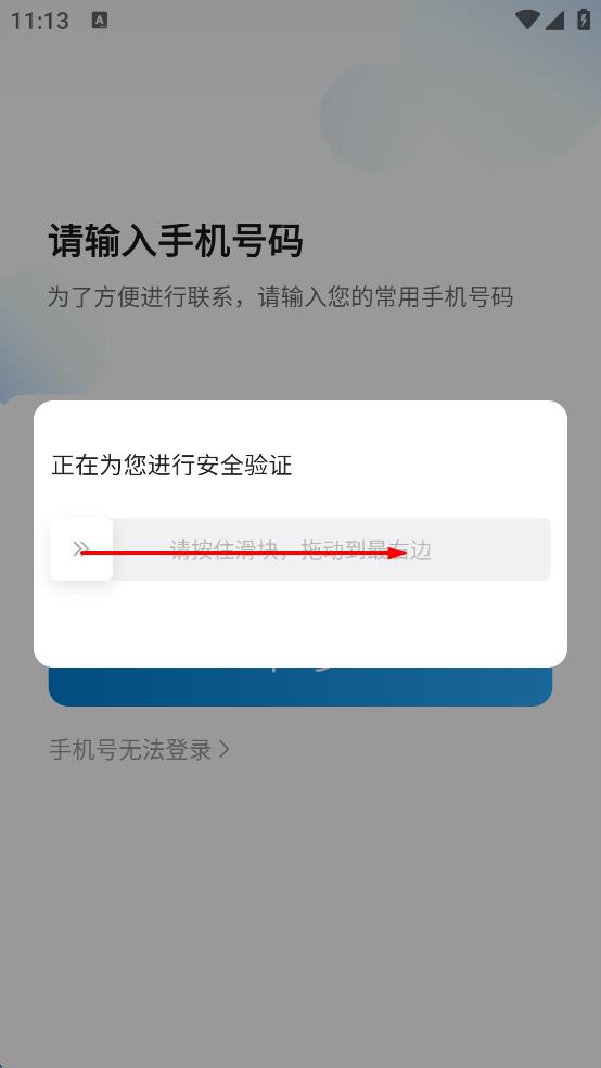 3、觸發(fā)安全驗證彈窗后,按住滑塊并拖動到最右邊,完成驗證,即可進入下一步注冊或登錄流程。