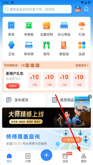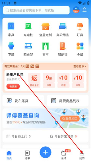 1、打開萬師傅app,點擊底部導(dǎo)航欄我的選項。