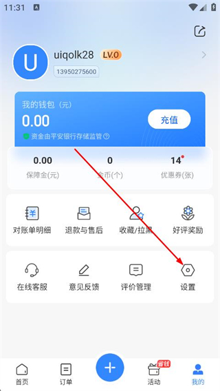 2、在我的頁面中,找到并點擊設(shè)置選項。