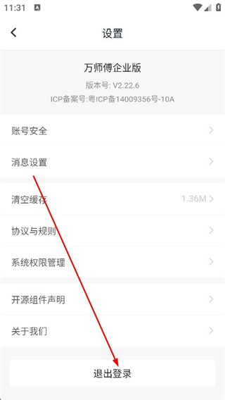 3、進(jìn)入設(shè)置頁面后,下滑找到并點擊退出登錄選項。
