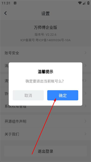 4、在彈出的窗口中,點擊確定,即可退出當(dāng)前登錄的賬號。