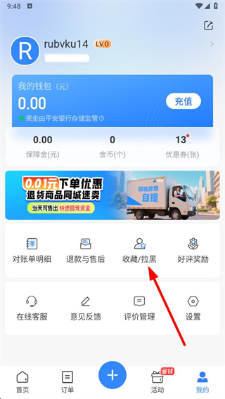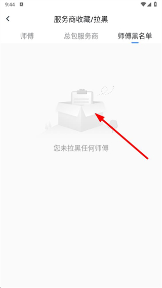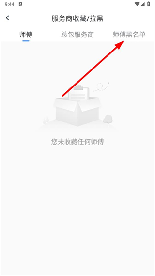 3、進(jìn)入服務(wù)商收藏/拉黑頁面后,點擊師傅黑名單選項。
