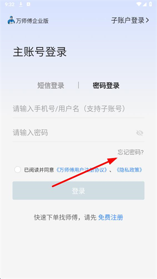 1、在萬師傅歡迎頁面,點擊立即登錄按鈕,進(jìn)入主賬號登錄頁面。