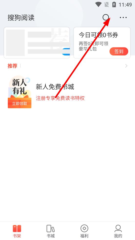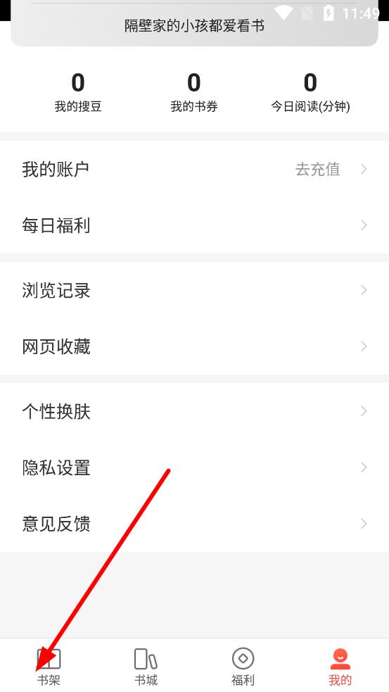 1、打開搜狗閱讀應(yīng)用,點擊底部導航欄中的書架選項,進入書架頁面。