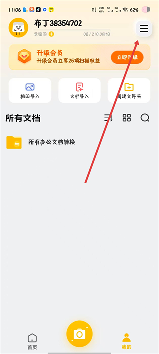 1、打開布丁掃描,點擊右上角三條橫線按鈕。
